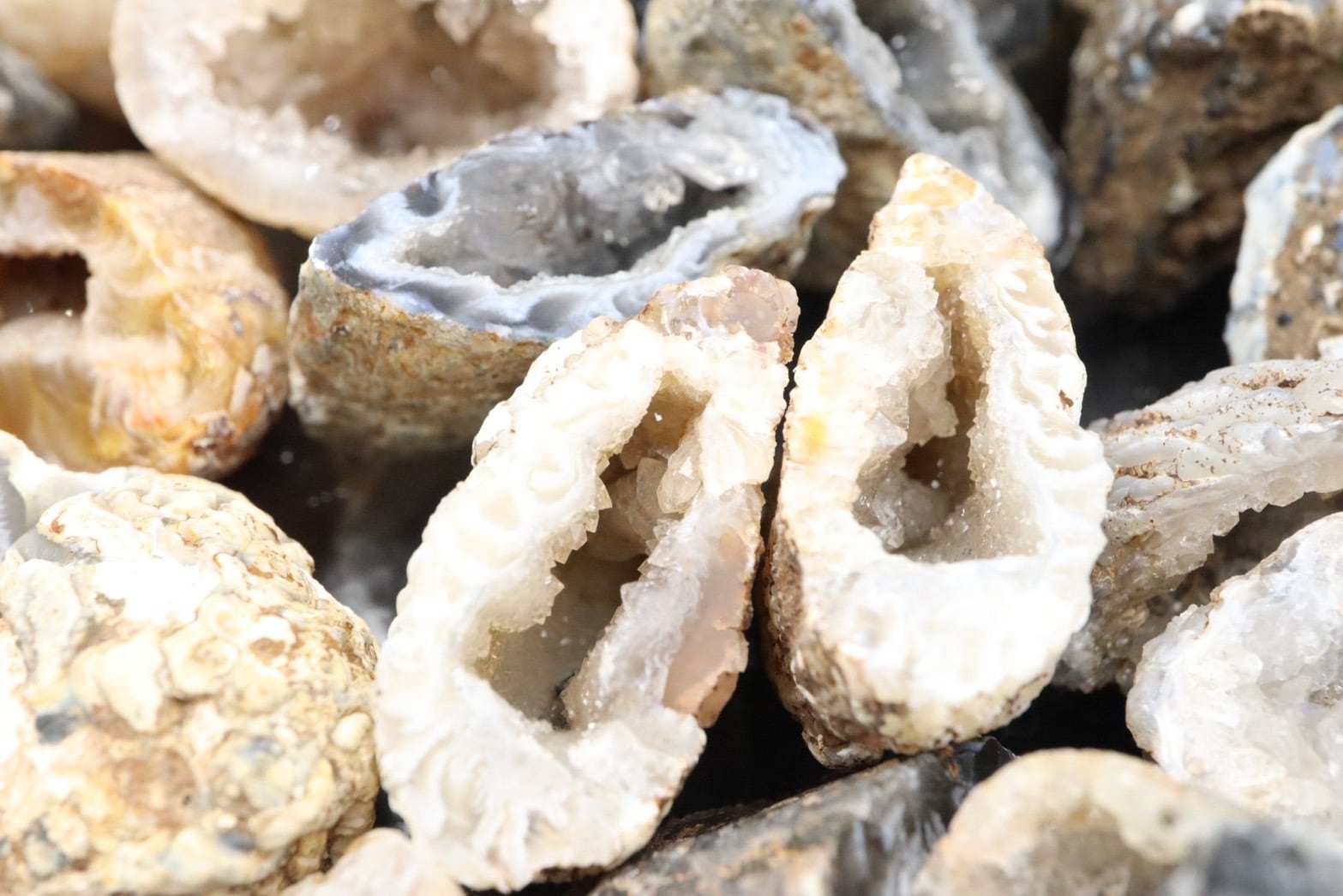 たまご型のストーンを割り、その内部に結晶が見られるものをサンダーエッグと言います。