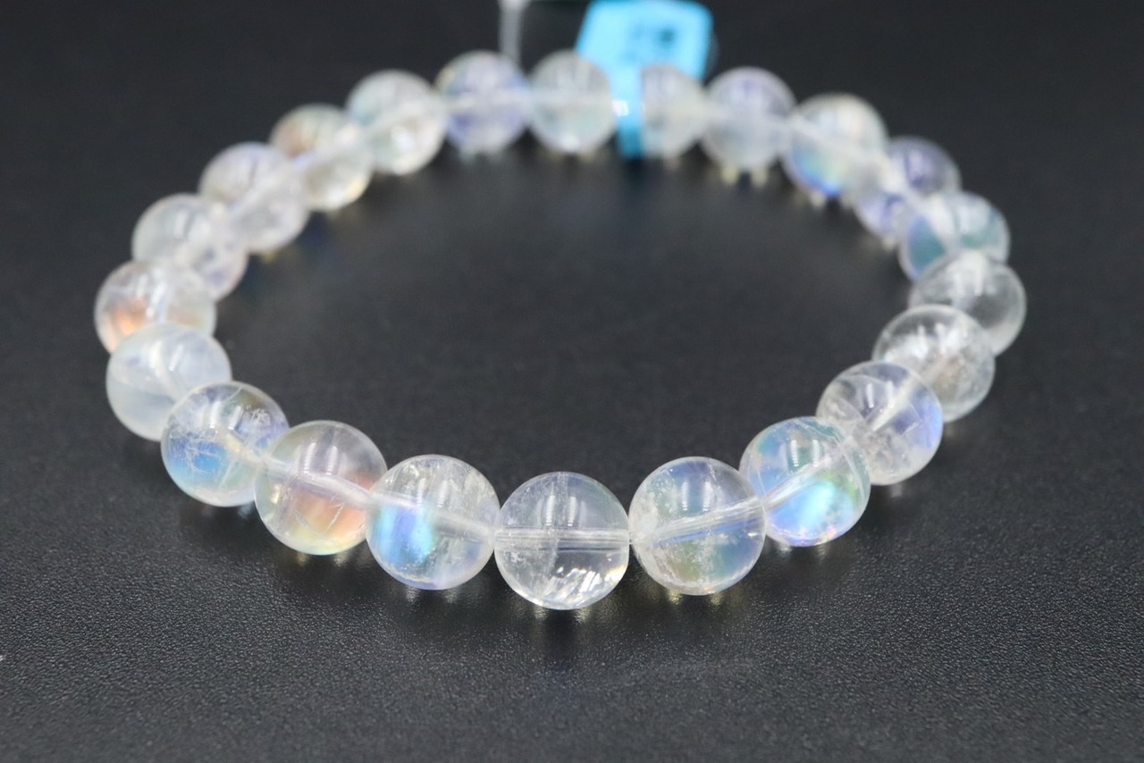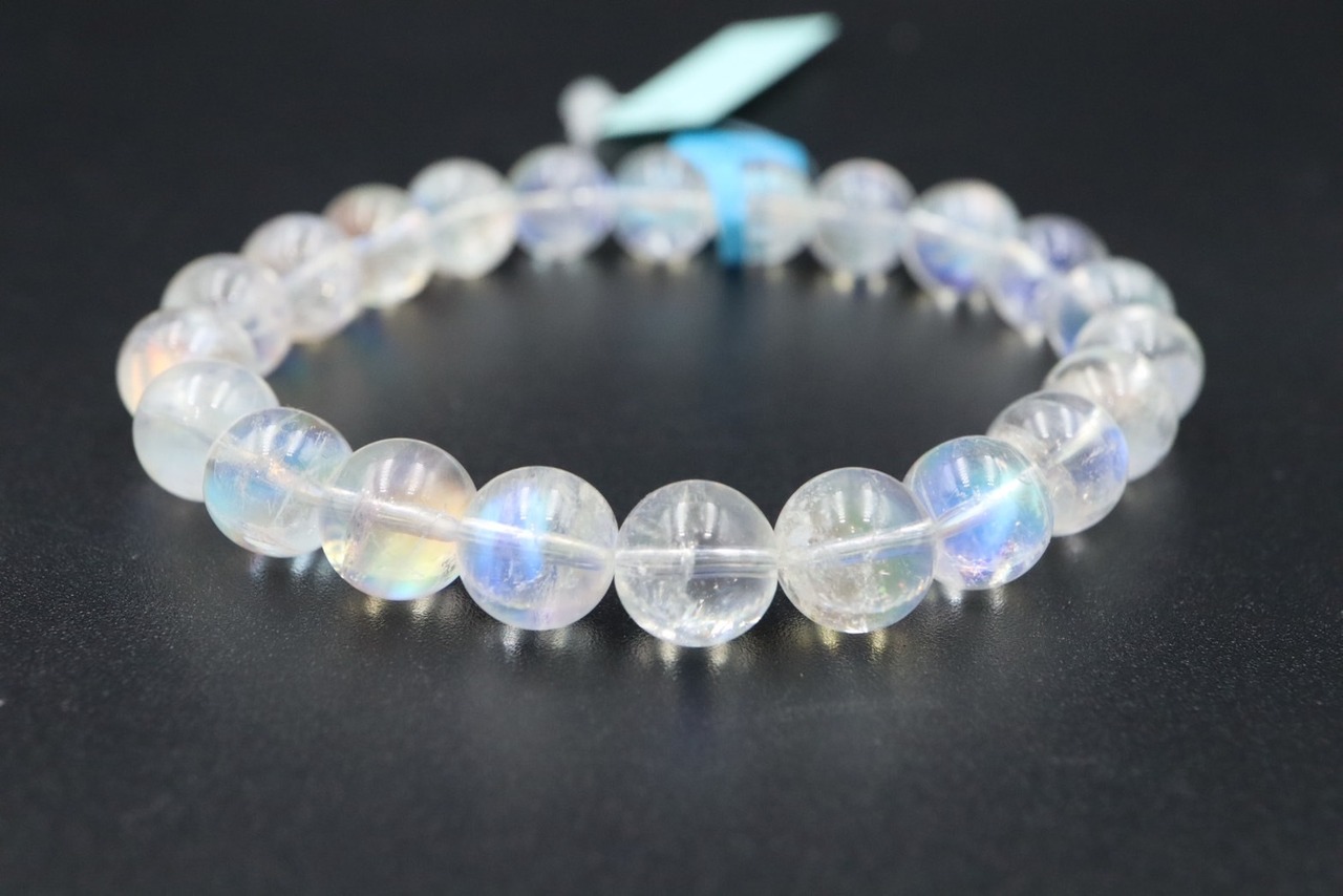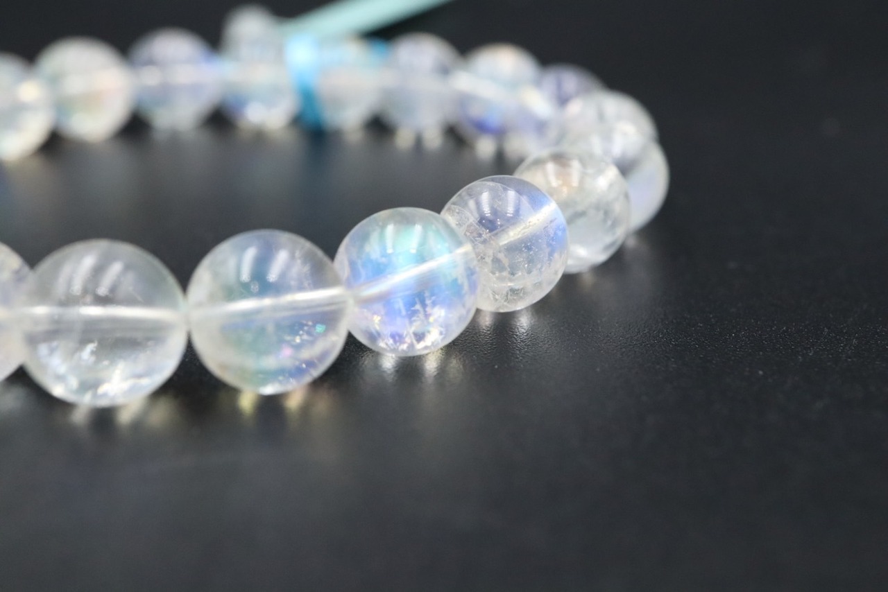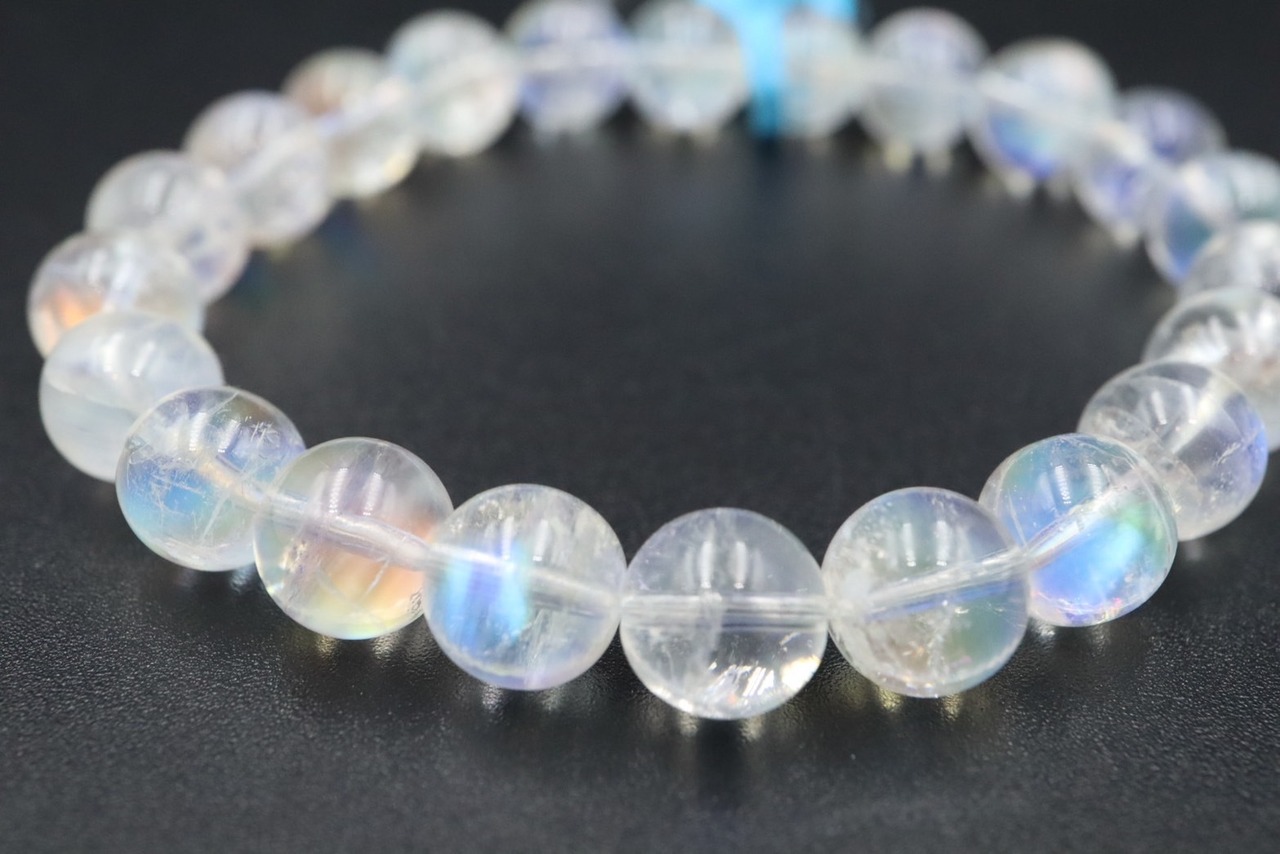インクルージョンが少なく、虹色の輝きが美しいものは「レインボームーンストーン」という名称で流通する人気の鉱物です。