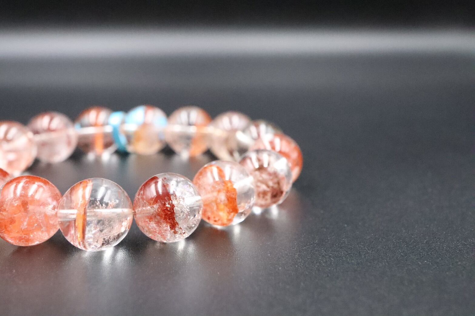 ヘマタイトインクォーツは、透明な水晶の中に赤や銀灰色のヘマタイトが内包された神秘的な天然石です。その美しい輝きは、「精神と肉体の調和」「現実化の力」「グラウディング(地に足をつける力)」を象徴しています。
