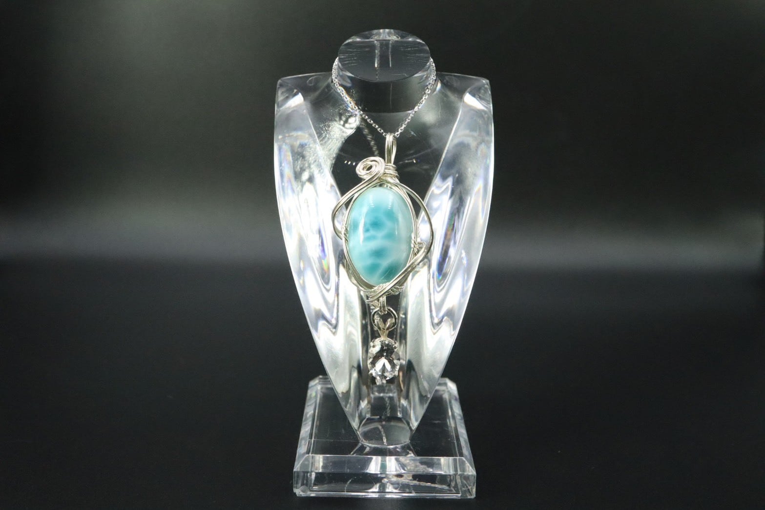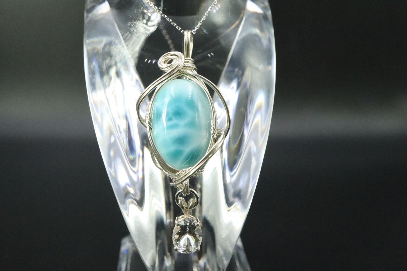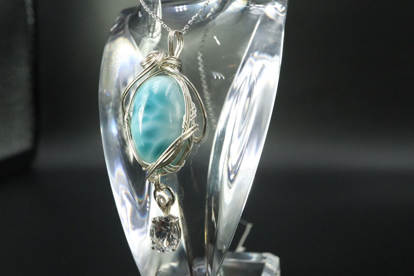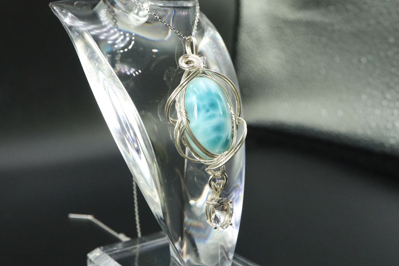 シルバー枠と繊細なワイヤーラッピングによって、石が持つ波動と美しさを最大限に引き出し、光を受けるたび、優しく、そして力強く胸元で輝きます。
